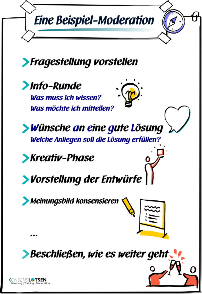 • Ich stelle Dir wichtige und erfolgreiche Abläufe von stattgefundenen Moderationen vor und wir reflektieren gemeinsam die Herangehensweise. Außerdem teile ich meine Flops mit Dir zu teilen, damit Du nicht dieselben Fehler machst.