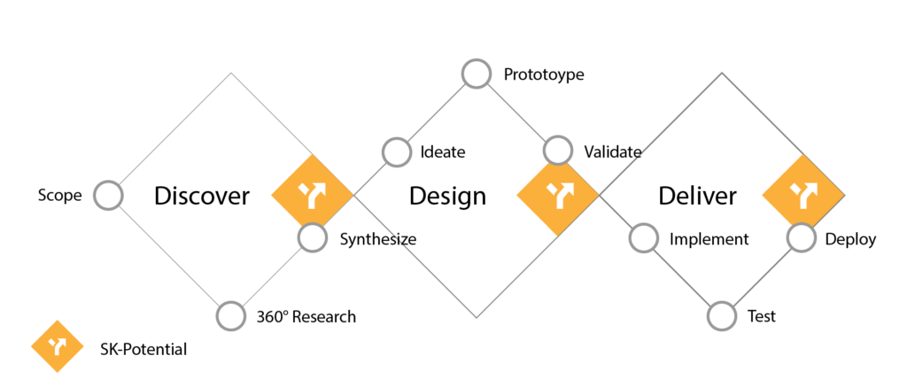 Für mich ist das SK Prinzip so etwas wie der fehlende Schlussstein im Design Thinking Prozess, um wirklich bessere – das heißt tragfähige – Zukunftsentscheidungen zu treffen.